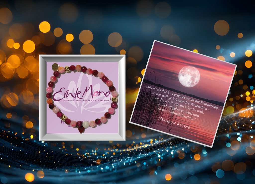 Dein Armband ist mehr als Schmuck: ein monatlicher Anker, ein persönliches Mala-Armband und eine liebevolle Erinnerung an dein Frausein – ein Symbol für deine stetige Wandlung und zyklische Kraft des Mondes.